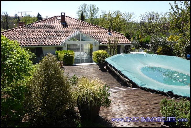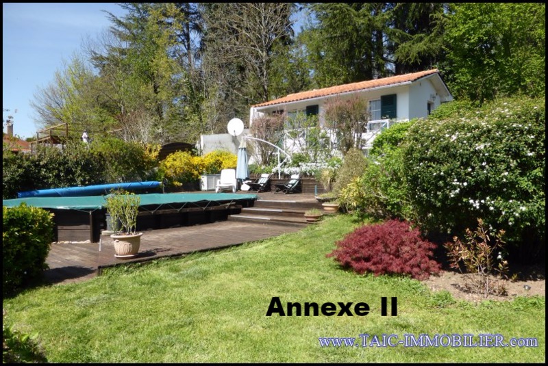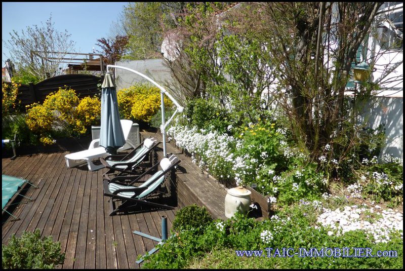 Sur 850m2 superbement paysagé, diverses essences, fruitiers, arrosage, puits.