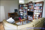 Sur la droite vaste salon avec cheminée et accès terrasse.