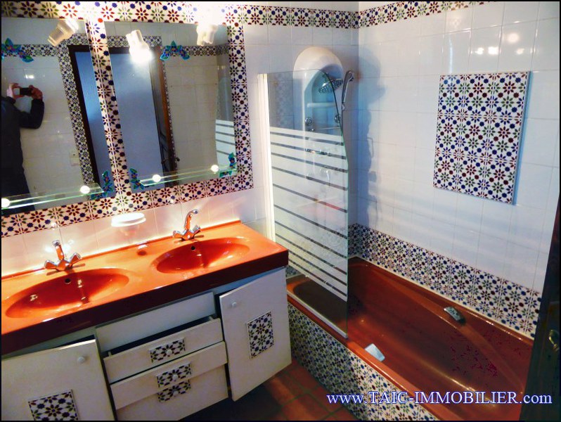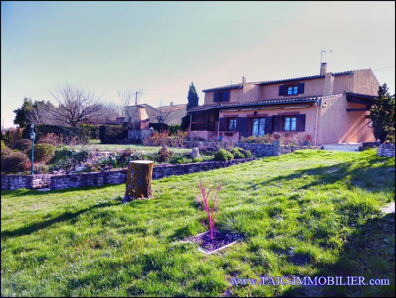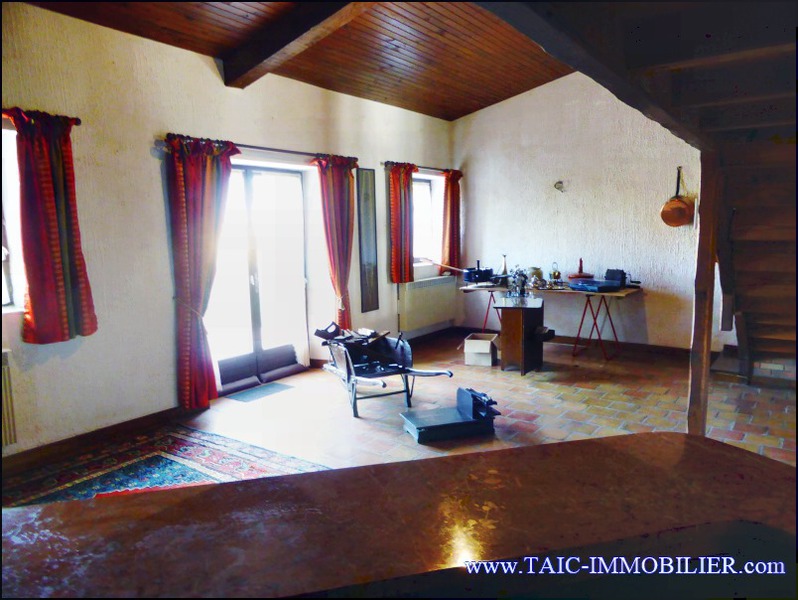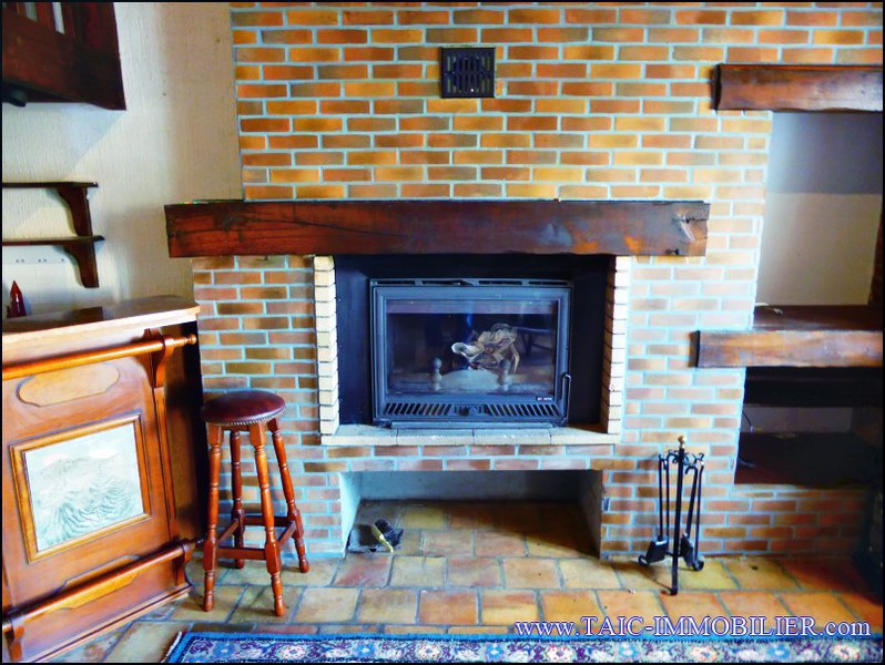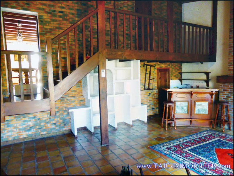 en suite en rez-de-jardin, Salon avec belle hauteur sous plafond, cheminée, coin bar avec point d'eau, cave à vin, accès sur une belle terrasse avec store bannes électriques et vue dominante sur la campagne environnante.