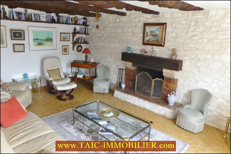 Entrée desservant sur la droite un salon avec cheminée, accès terrasse,