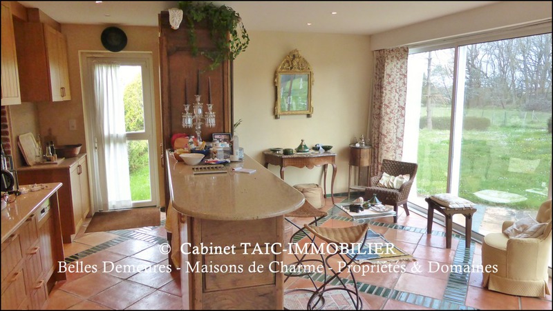 Cuisine ouverte sur une belle salle à manger tout en baies vitrées sur le Parc,